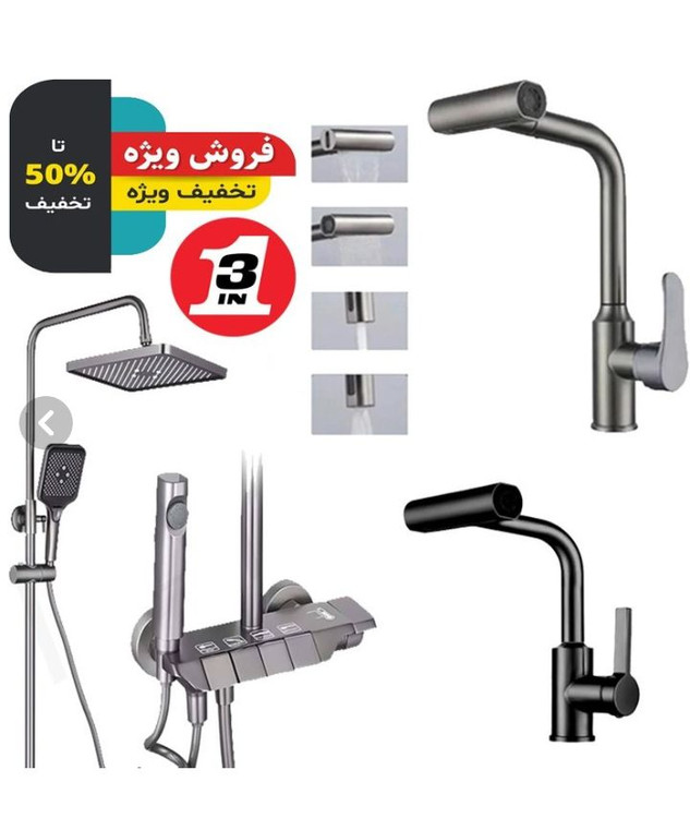 پک سه تایی شیرآلات اقتصادی روشویی +ظرفشویی+دوش پیانویی