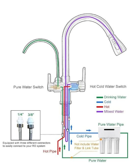 این محصول دومنظوره فنری میباشد و قابلیت اتصال به دستگاه تصفیه آب را دارد دارای شلنگ سرد و گرم میباشد